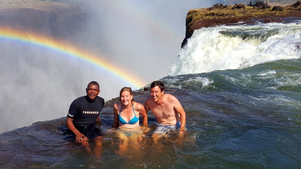 The guys have tied a harbour rope to a staunch tree on the Zambian side of the river, on Victoria Island, where you enter the river in the winter to reach the Devil’s Pool, a swimming spot on the lip of the Vic Falls gorge popular with a small segment of courageous, if not foolhardy, tourists.